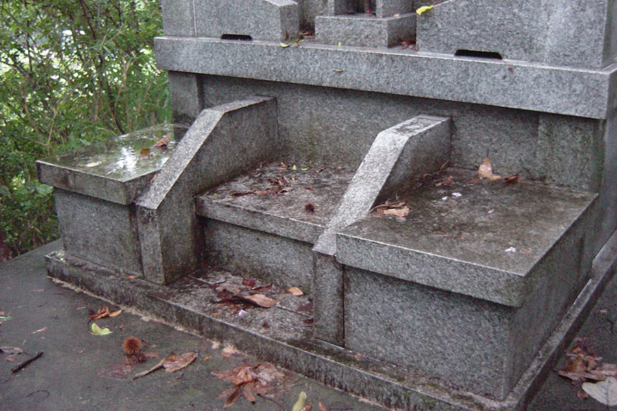 お墓は外にありますので、長い年月の間に、日光による文字色の退色をはじめ、湿気が多い場所では苔が覆ったり、落ち葉の色が石に染みついたりすることもあります。こうした長年の劣化を自己判断で修復しようとすると、かえって石を傷めてしまうことがありますので、難しいなと感じたら、プロの石材職人に依頼することをお勧めします。